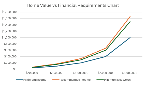Here’s a visualization of how home prices relate to required income and net worth levels: